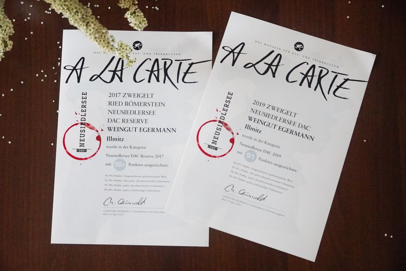 Es hat uns ganz besonders gefreut, dass wir gleich zwei Zalto Dekanter für jeweils zwei unserer Weine entgegennehmen durften: